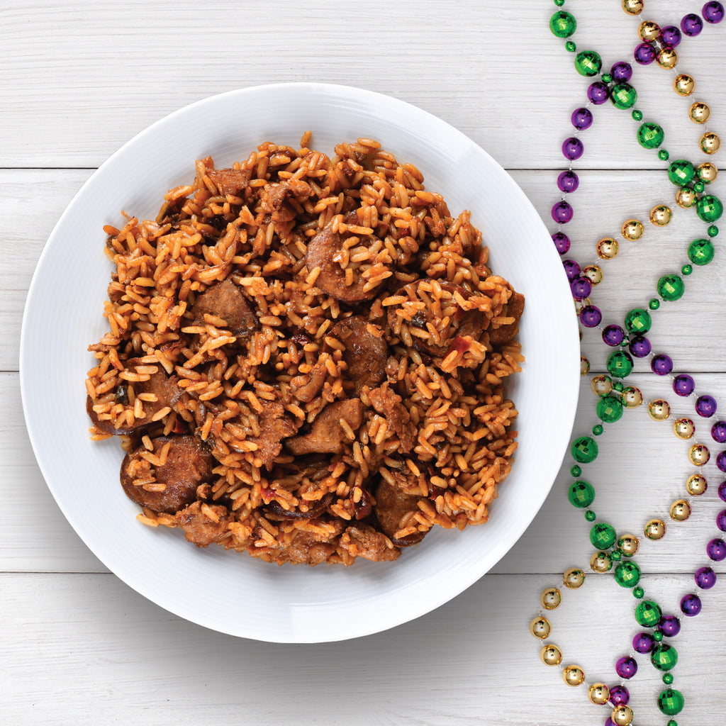 JAMBALAYA INGREDIENT STATEMENT: Rice, white onion, bell peppers, salt, vegan beef flavored base (hydrolyzed vegetable protein (soybean), maltodextrin, salt, natural flavors, autolyzed yeast extract, rapeseed oil, dehydrated onions, caramel, spices, celery seeds), paprika, garlic, flavor enhancer (hydrolyzed corn protein, autolyzed yeast extract, soybean oil added), palm oil, spice, caramel color, celery seed, chilies, silicon dioxide (anti-caking agent). Contains: Soy, Celery.